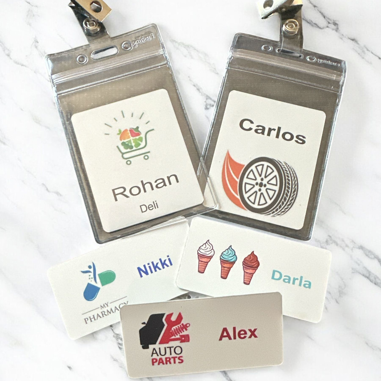 We manufacture durable, professional employee name badges for businesses that need consistent branding, daily wear reliability, and straightforward reorders as teams change.