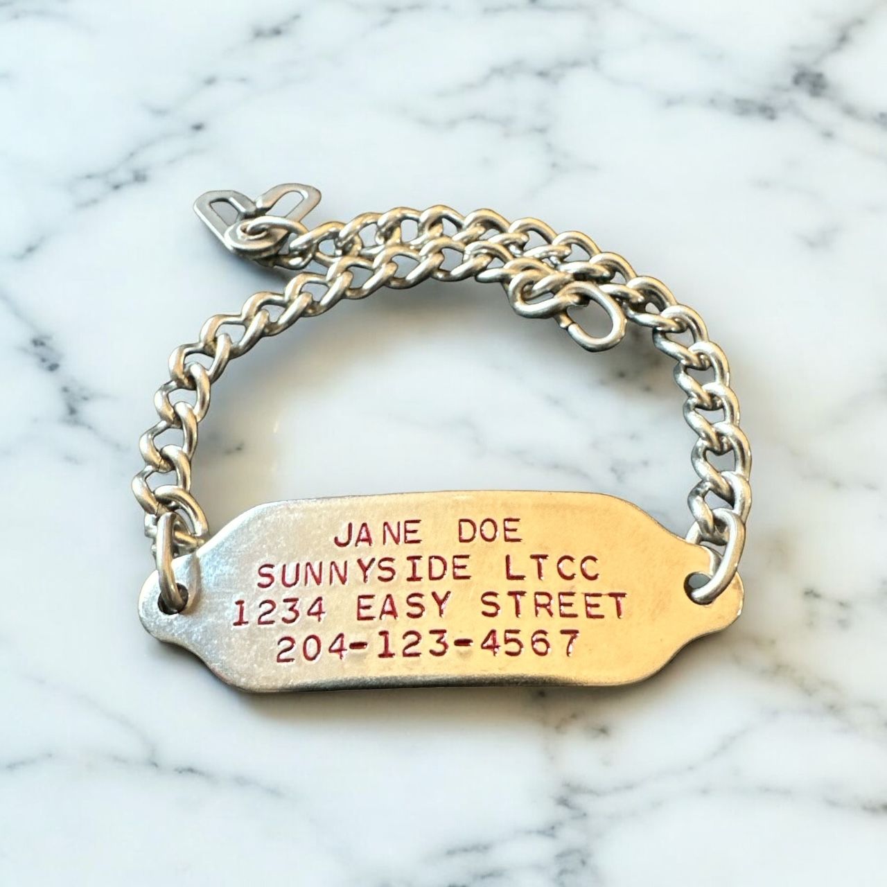 Medical ID bracelets designed for clear, consistent resident identification in care environments.