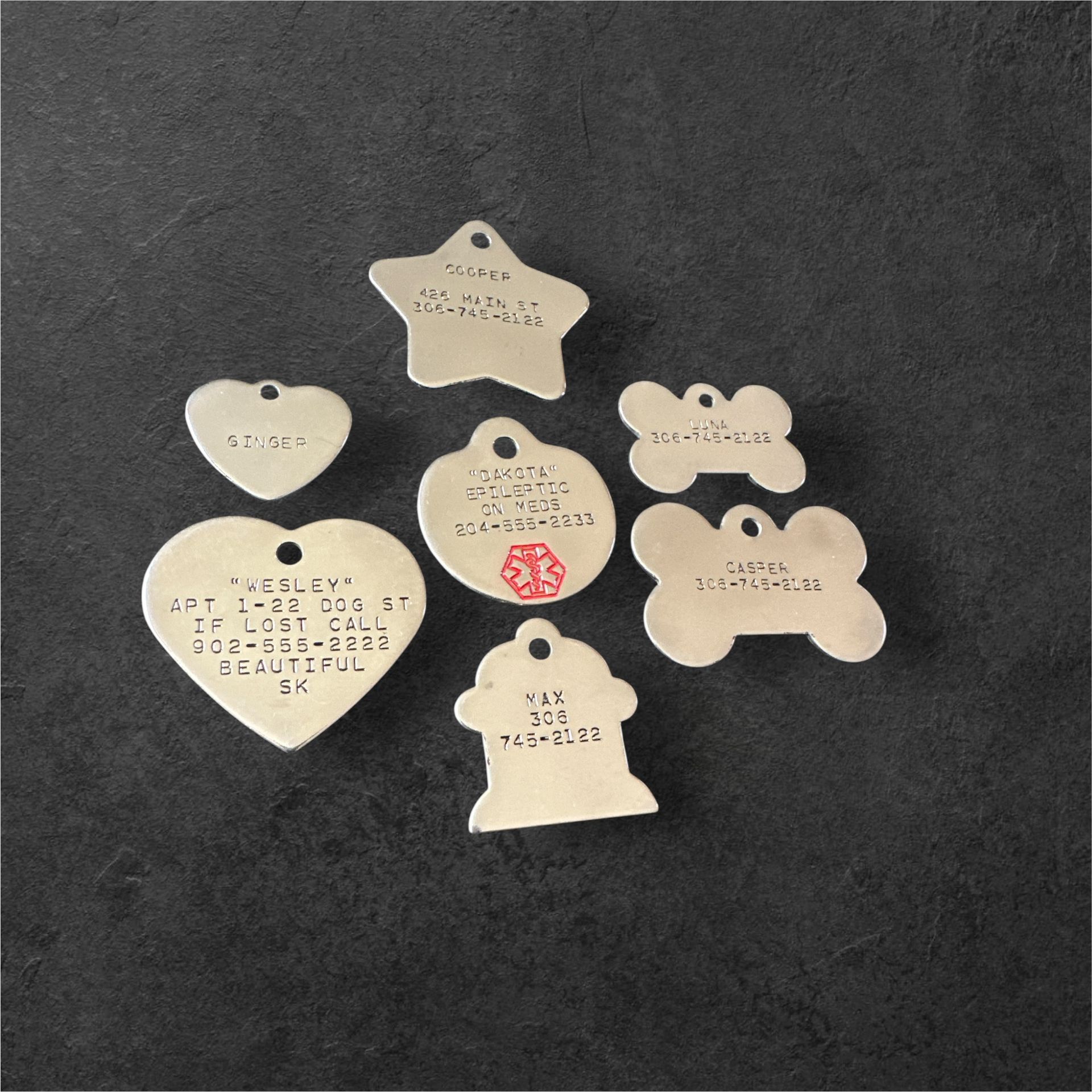 Our pet ID tags are manufactured from stainless steel and engraved using permanent marking methods designed to remain legible with everyday wear.